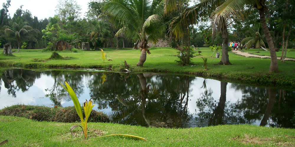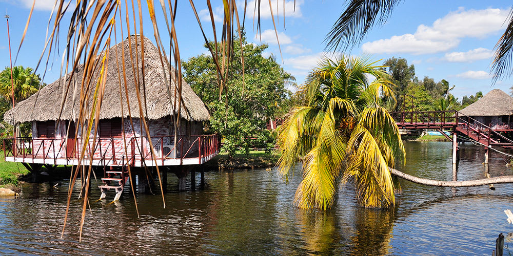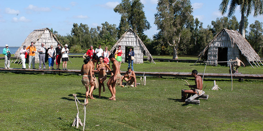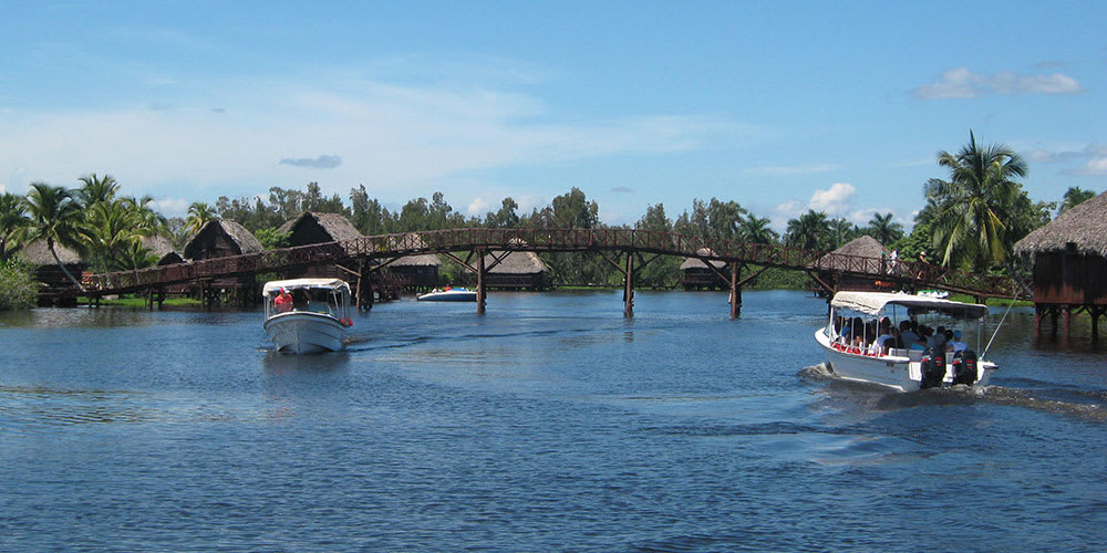 Pass by boat through the Laguna del Tesoro and visit the replica of a Taina Village