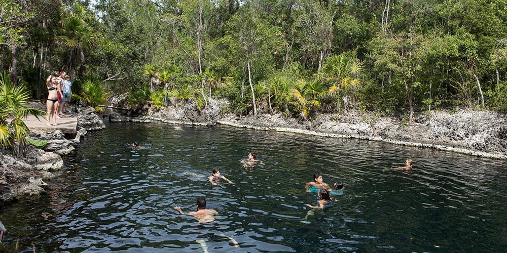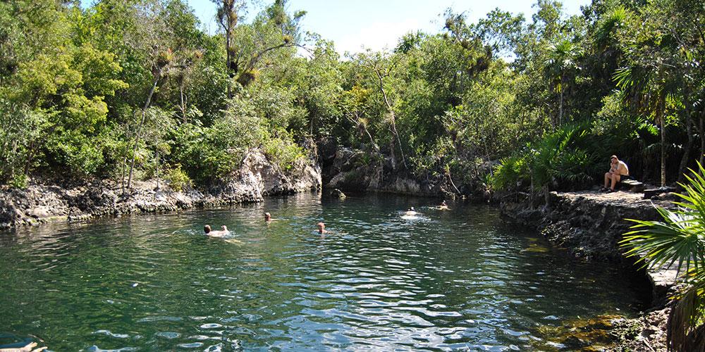 The Cueva de los Peces is a magnificent place for lovers of nature and the sea. It is located 18 km from Playa Girón, south of the province of Matanzas, on the Zapata peninsula, known for hosting one of the most important habitats in Cuba. The cave is a cenote, considered by many to be the most beautiful in Cuba, which they abound in the area. It is a very deep natural pool connected to the sea despite being located inland. It connects with the Caribbean Sea and is surrounded by extensive vegetation. Visitors take the opportunity to come and bathe in its calm waters and enjoy the welcoming landscape.Both the Cueva de los Peces and the small beach with turquoise waters in front of it are ideal places to practice water sports such as scuba diving and snorkelling as the marine fauna is particularly beautiful in this place.