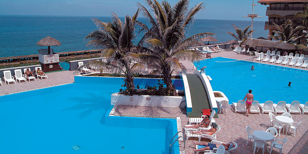 The 3-star Copacabana hotel in Havana is one of the very few hotels directly overlooking the sea and with a beautiful swimming pool that skims the ocean waters.