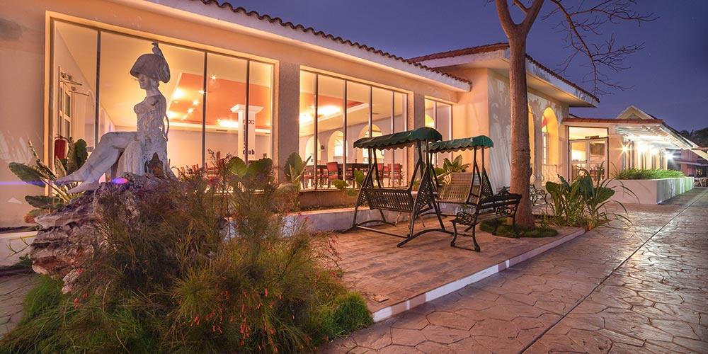 Activities: 3 magnificent outdoor swimming pools surrounded by tropical vegetation. One in the relaxation area with outdoor Jacuzzi and solarium equipped with sun beds and umbrellas, massage service, daytime and evening entertainment, non-motorized water sports, dance lessons, water aerobics, yoga, beach volleyball and much more to make your days active.