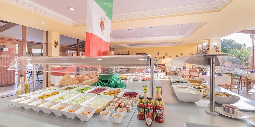 Restaurants: La Hacienda buffet to enjoy breakfast, lunch and dinner with a variety of international foods. 3 à la carte restaurants to enjoy Mexican and Mediterranean specialties and the sushi bar. 24-hour snack service with burgers, hot dogs, sandwiches and more. Snack ranch near the beach for lunch.