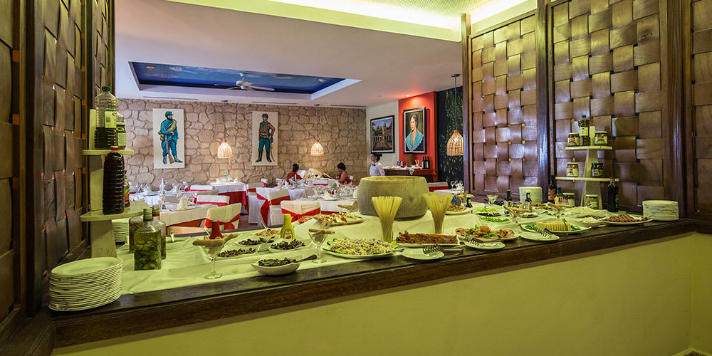 5 Restaurants: in addition to the large international buffet, you will find an Italian and Asian a la carte restaurant, a more elegant gourmet restaurant for an evening as a couple and a restaurant with seafood.