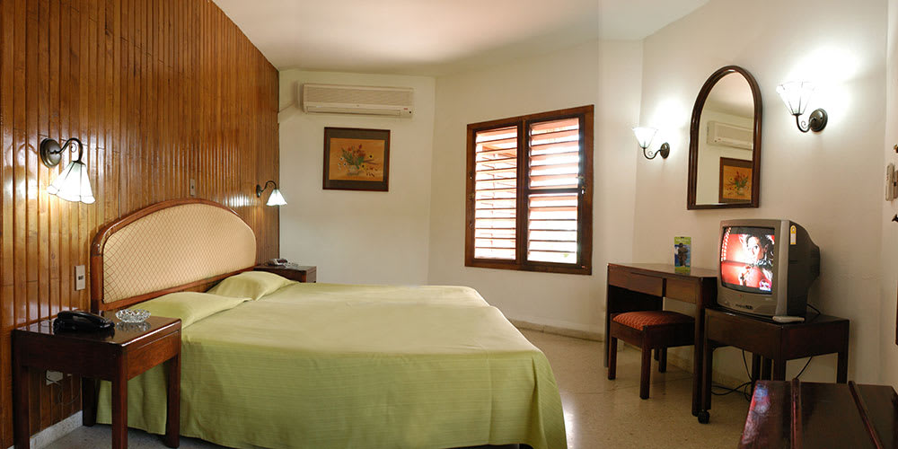 The Hotel La Granjita is located just 3 miles from Santa Clara airport. This is the ideal place for an overnight stay in a well cared rural environment with full enjoyment of typical Cuban rural cuisine, music and traditional shows. Surrounded of an exuberant nature among palms, coconut trees and fruit-bearing trees, and of sociocultural and historical places of interest, as the Brief Ernesto Che Guevara. 65 air-conditioned roms, in bungalows style , all with private bath, satellite TV, radio and telephone.Located to only 5 km of the airport of the town, this village is typical for its family treatment and tranquility. A place to cohabit with the nature, where the guests can enjoy the pleasure of feeling in family.