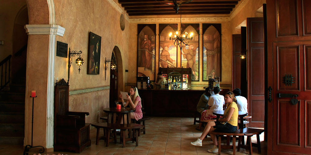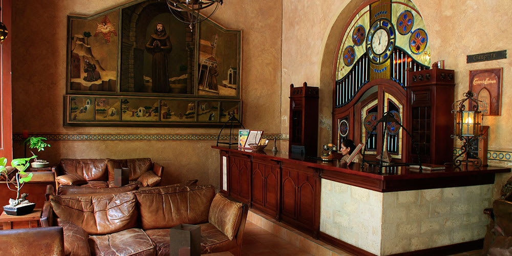 Los Frailes (Friars) Hotel is situated in the former house of Marquis Pedro Pablo Duquesne, a French Navy captain and fourth holder of this nobility title, arriving in Havana in 1763 after King Luis XVI’s death. Los Frailes Hotel, like a perfect place for meditation, takes visitors back to a medieval abbey atmosphere. Monks represented in copper sculptures, religious altarpieces and other details comprise the decoration of this ideal spot for a restful break. Rooms with an exclusive atmosphere, a lobby bar featuring works of art and stained glass windows and a peaceful interior courtyard with a fountain and a well, make this hotel one of the most beautiful buildings in the Historic Center. Every Friday, at nightfall, the hotel employees, wearing costumes like those of Franciscan monks, invite guests to an unusual ceremony at the lobby, where they drink a toast with mass wine. The hotel is located across the Aquarium and very near the Dark Chamber, a peculiar vantage point on top of one of the buildings in the Old Square. Los Marinos and Café Taberna restaurants are on both sides of the street where the hotel is located, serving traditional Cuban and international dishes. A few steps away is St. Francis of Assisi Convent, with a concert hall for choral and chamber music, galleries and the Sacred Art Museum, the only one of its kind in Cuba.