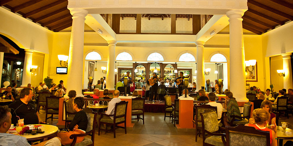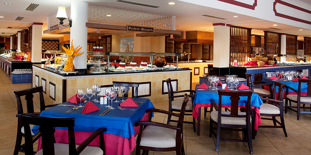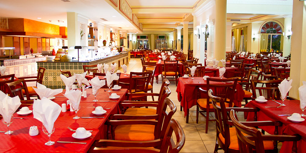 A wide range of all-inclusive services include unlimited drinks and meals in the four bars, an international buffet and four a la carte restaurants, and daily entertainment and show activities.