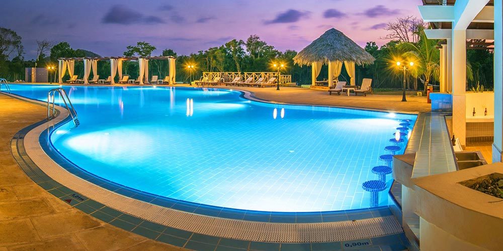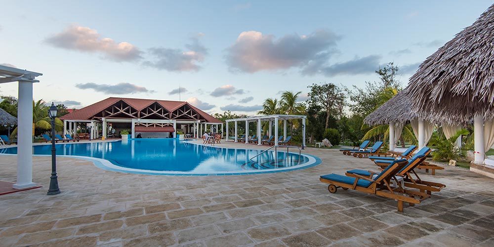 Hotel Gaviota Playa Pesquero the best all inclusive resorts in the Playa Pesquero. Located on Pesquero Beach, along the northern coast of Holguin province, Eastern Cuba, just a short ride from Guardalavaca. Designed especially for relax and families, is the perfect hideaway for honeymooners and couples looking for a luxurious and relaxing vacation. But not only couples will enjoy the splendid resort, there are many facilities for groups. Playa Pesquero hotel is surrounded with the tropical vegetation of the nearby ecological park. Its construction and decoration recreate the region?s entire cultural traditions and reproduces elements which personalize it, such as Holguin?s oldest train engine, its roads paved as if they were railroad tracks, housing blocks with names of streets and places in Holguin and Santiago de Cuba. A very original concept of local traditions and Caribbean images to unite tourism and culture in one integral product. At Playa Pesquero you will find variety of day and night entertainment programs. There are also special facilities for kids: swimming pool and a club.