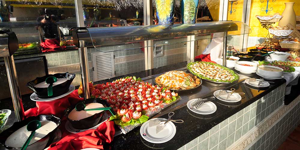The culinary experience includes five restaurants serving a mix of local flavors and international cuisine. As part of the all-inclusive service, guests have access to a wide selection of domestic and international beverages, including cocktails, juices, and wines. The property features several social spaces, such as a lobby piano bar, poolside service, and a dedicated beach bar for seaside convenience.