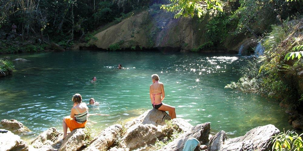 TRINIDAD - GUANAYARA PARK / Topes de Collantes - TRINIDAD. Departure at 9 o´clock from Cubatur Office in Trinidad to Tope de Collante by Russian truck. Visit to a lookout point to enjoy a magnificent panoramic view of the City and the Caribbean Sea. Arrival at “Casa de la Gallega” through tropical rain forests and coffee plantations. Welcome Cocktail. Access to the hiking trail “Sentinels of the melodic river” with an expert on the Cuban Flora and Fauna (3 kms.). Time for swimming at the ponds and the waterfall “The Dew”. Light lunch at the Restaurant” “La Gallega” that with its Creole meal complements the interesting adventure. Return to Trinidad.
