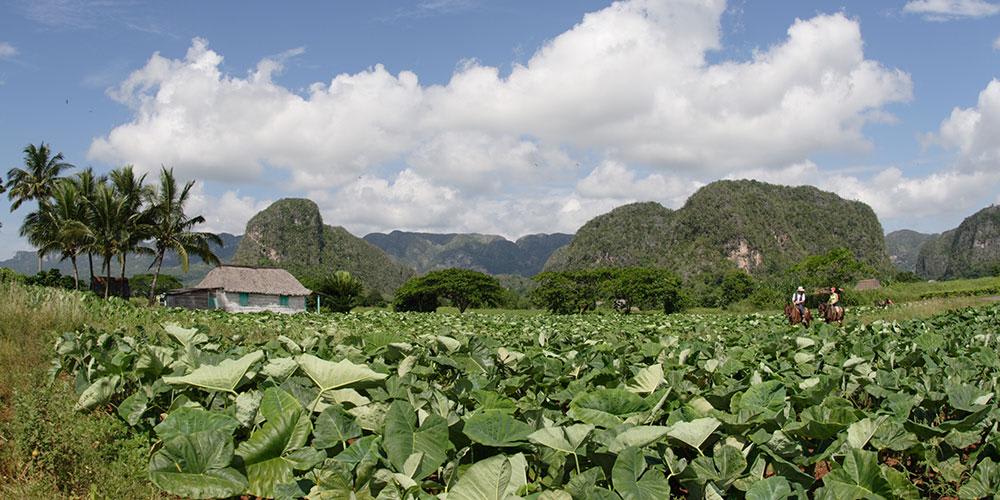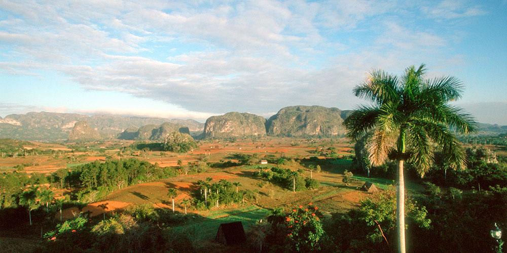 Breakfast. Full day group excursion to Vinales Valley. Departure at about 08.00 towards the valley of Pinar del Rio, the northernmost province of Cuba known for its tobacco plantations and protected areas as a "Biosphere Reserve". Distance from Avana 180 km. Once in Vinales you will visit the area that has been declared a UNESCO protected landscape with a stop at the tobacco plantation "la casa del Veguero". Visit to the viewpoint "the mirador de Los Jasmines" from which you can enjoy a breathtaking view of the valley, palm groves, plantations and the typical rock formations "mogotes" which stand like monoliths in the whole valley. You will enter a karstic formation with a river that flows inside it at the Indio’s cave. Lunch included based on typical Creole cuisine. Visit to the Murales of prehistory, a giant fresco painted on one of the Mogotes of the valley by the students of anthropology of the University of Havana. Return to the city of Havana in the early evening.