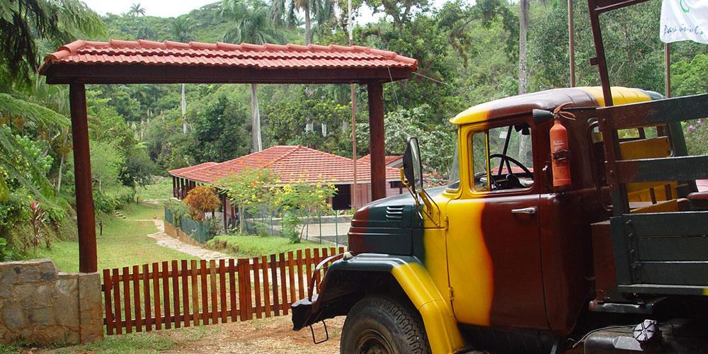TRINIDAD - GUANAYARA PARK / Topes de Collantes - TRINIDAD. Departure at 9 o´clock from Cubatur Office in Trinidad to Tope de Collante by Russian truck. Visit to a lookout point to enjoy a magnificent panoramic view of the City and the Caribbean Sea. Arrival at “Casa de la Gallega” through tropical rain forests and coffee plantations. Welcome Cocktail. Access to the hiking trail “Sentinels of the melodic river” with an expert on the Cuban Flora and Fauna (3 kms.). Time for swimming at the ponds and the waterfall “The Dew”. Light lunch at the Restaurant” “La Gallega” that with its Creole meal complements the interesting adventure. Return to Trinidad.