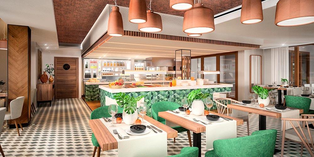 6 Restaurantes: además del buffet internacional que satisface todos los gustos y requerimientos alimentarios, también tendrás a tu disposición un restaurante y grill cubano, mediterráneo, mexicano, italiano.